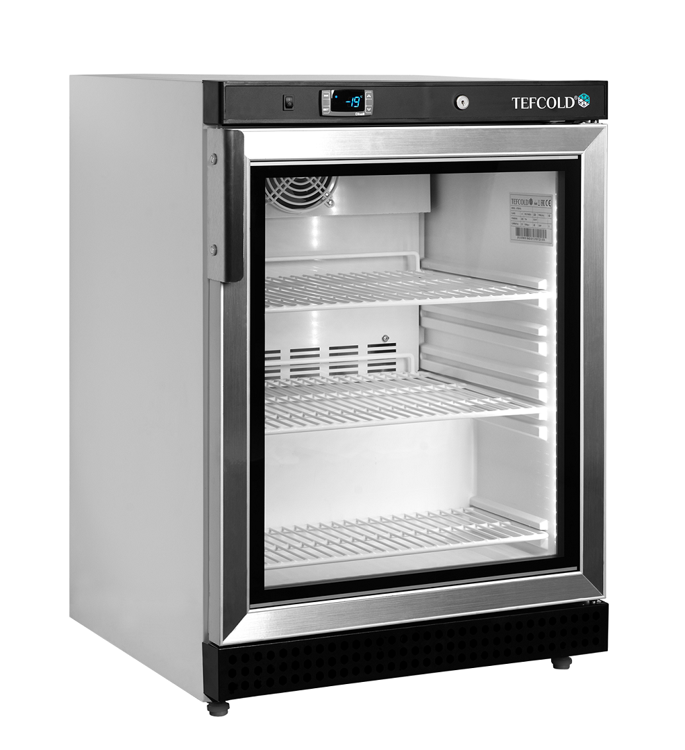 La gama UF-VG de congeladores de exposición es la versión con ventilador de nuestra gama de congeladores de puerta de cristal blancos. Está disponible en una amplia variedad de tamaños y ofrece una excelente flexibilidad con estantes ajustables. El eficaz sistema de refrigeración asistido por ventilador garantiza una temperatura homogénea en todo el armario. La temperatura se puede ajustar en una pantalla de termostato digital de fácil uso. La descongelación se produce de manera automática.