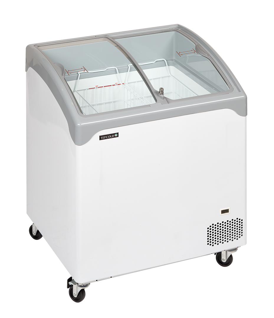 La gama premium NIC de congeladores de helados cuenta con un excelente diseño con esquinas curvadas, cantos redondeados y tapas de cristal curvadas deslizantes. Estos congeladores son muy estables y de construcción sólida, pero al mismo tiempo incorporan ruedas para poder cambiarlos de sitio fácilmente en la tienda. Son ideales para exponer alimentos congelados, incluidos helados y polos. Dispone de un juego completo de cestos.