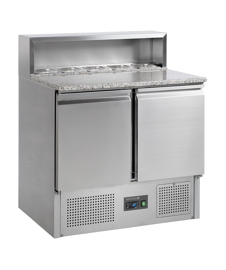 La gama PT de mesas para pizza está realizada en acero inoxidable SS304. Cuenta con una encimera de granito, que es ideal para elaborar pizzas, ya que se mantiene fría y dificulta que la masa se pegue a ella. Están disponibles en varios tamaños con 2 o 3 puertas. También es posible personalizarlas con cajones. Está disponible con o sin unidad de condimentos para bandejas GN1/3 las unidades de condimentos también se pueden incorporar posteriormente.