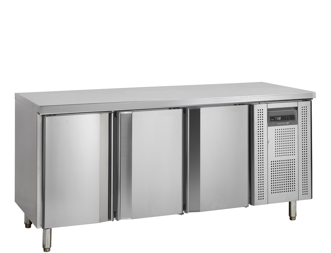 Acero inoxidable/Refrigeración forzada/Descongelación automática/Puertas de cierre automático/Encimera desmontable/Patas regulables/Ruedas giratorias opcionales