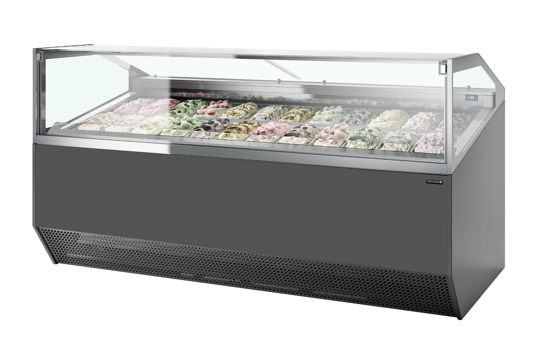 Con grandes paneles de cristal e iluminación LED, ideal para la presentación de helados. El expositor en ángulo de 11° optimiza la visión, mientras que la refrigeración de doble flujo de aire garantiza una distribución uniforme de la temperatura. El cristal calefactado evita la condensación, mientras que el cristal frontal abatible permite una fácil limpieza.