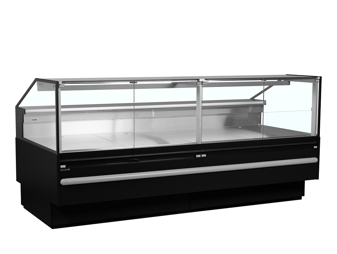 Acabado negro/Excelente visibilidad de producto/Cubierta de acero inoxidable de 825 mm de fondo/Cristal frontal antiempañamiento/El frontal de cristal se abre hacia delante para una fácil limpieza/Estante trasero de acero inoxidable/Refrigeración forzada/Temperature Class 3M1/Luz superior LED/2 tomas de 220-240V en la parte trasera/Kit de montaje como accesorio/Paragolpes