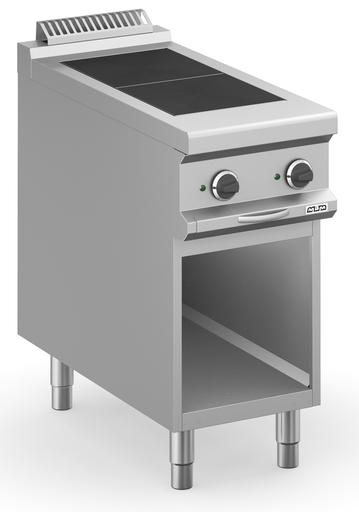 Horno eléctrico: equipado con resistencias blindadas en acero inoxidable de 6 kW (10 kW para horno maxi) colocado en la parte inferior y en la parte superior de la cámara de cocción; regulación de temperatura termostática con doble control inferior / superior separado para una máxima flexibilidad de cocción.
