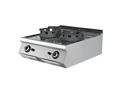 • Cocina Wok con fuego de llama vertical dirigida directamente al centro de la sartén wok. Se crea una abanico de calor por toda la superficie consiguiendo una temperatura extrema idónea para este tipo de cocción.